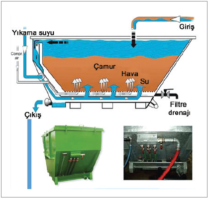 Makina Mühendisi Karl Kugler tarafından 1964 yılında kurulan KUGLER firması, zamanla yakıt tankları imalatında uzmanlaşarak 1970’lere gelmeden firma adına önemli bir gelişme kaydetmişti. 1960’lı yılların sonunda imalatlar daha çok depolama tankları ve konteynerler üzerinde yoğunlaşmıştı. Gün geçtikçe konteyner imalatında da uzmanlaşan firma, amaca yönelik özel üretim tesisini de devreye sokarak, çamur ve katı atıksuların susuzlaştırılması için özel olarak geliştirdiği ilk konteyneri olan KUGLER EWC tipinin patentini aldıktan sonra seri imalatına 1982 yılında başlamıştı. Zaman içinde edinilen deneyimler, atıksu arıtma ve çamur susuzlaştırma uygulamalarından gelen ihtiyaçların karşılanabilmesi amacıyla yapılan araştırma ve geliştirme çalışmaları sayesinde çeşitli patentlerin de alınması, KUGLER firmasının günümüzdeki üretim çeşitliliğine ulaşabilmesinde önemli bir itici güç ve motivasyon olmuştu. 1992 yılından itibaren firma daha da gelişmiş ürünlerle katı-sıvı ayırımında ve çamur susuzlaştırmada piyasada önemli bir yer edinmişti. Kugler firmasının son yıllardaki atılımıyla, önemli kuruluşlar, endüstriyel tesisler ve özellikle belediyeler KUGLER’in devamlı müşterileri haline geldiler. Günümüzde KUGLER, Kugler Behälter- und Anlagenbau GmbH olarak 2013 yılından itibaren dünya çapında uygulamaları olan bir firma olarak çalışmalarını başarı ile sürdürüyor. Özellikle çamur susuzlaştırma konteyner sistemleri (Dewatering Containers Systems, EWC, Lamella Separators) için özel üretimler yapan KUGLER Grubu, bünyesinde beş ayrı firma, toplam yüze yakın çalışanı ve 10 milyon Euro’yu aşkın cirosuyla özellikle Avrupa ve Amerika’da faaliyetlerine devam ediyor. KUGLER, katı-sıvı ayırımında ve çamur susuzlaştırma alanında uzman olup, 25 yılı aşkın bir süredir almış olduğu patentler ve başarılı uygulamaları ile güvenilirliği kanıtlanmış uzman bir imalatçı. Her türlü endüstriyel ve evsel atıksularda ve arıtma çamurlarında her proje için özel olarak seçilen ve projelendirilmiş, sadece Avrupa’da 1000’i aşkın sayıda uygulaması bulunuyor. KUGLER firması, her türlü endüstriyel atıksu uygulamasında en basit EWC tipi konteynerden 200 m3/saat kapasiteye kadar olan özel geliştirdiği kompleks imalatlara kadar geniş bir üretim yelpazesine sahip. ![]() Kugler-EWC Konteynerlerin Avantajları - Düşük ilk yatırım maliyeti - Uzun ömür - Problemsiz çamur susuzlaştırma imkanı - Kısa sürede katı çamur temini - Uzaklaştırma maliyetlerinin azaltılması - Kolay temizleme için hareketli bir filtre sepeti - Tabandaki filtre, yan duvarlar ve arka duvardaki filtreler ile büyük filtre yüzeyi - Çamur ile ilgili soruna cevap verecek geniş üretim yelpazesi. Atıksu-Çamur Doldurma ve Susuzlaştırma / “Skip” Tipi Susuzlaştırma Konteyneri (3-10 m3): Bu tip susuzlaştırıcı konteynerin dış kısmında her türlü araç ile taşınabilen ve boşaltılabilen standart bir konteyner bulunuyor. İç kısmında değiştirilebilen “EWC” adı verilen bir filtre sepeti var. Filtre sepeti delikli plakalardan oluşan çelik çerçeveli bir tüp ve yüksek dayanımlı filtre malzemesinden ibaret. Alt kısmında bulunan vanalar yardımıyla süzüntü suyu kolayca drene ediliyor. Konteyner içindeyse daha kuru kıvama gelen susuzlaşmış katı kıvamdaki çamur kalıyor ve bu çamur kekinin en ekonomik bir şekilde depolama alanına taşınmasına imkan sağlanıyor. Bu sayede taşıma masraflarında yüzde 70’e varan bir ekonomi elde ediliyor. “Roll-Off’’ Tipi Susuzlaştırma Konteynerleri (8-25 m3): Halat veya kanca yardımıyla kaldırılıyor ve taşınıyor. Boyutları ihtiyaca göre istenen ölçülerde imal ediliyor. Standart tipte imal ediliyor, çamurun taşınması ve boşaltılması sırasında maruz kalacağı etkilere karşı çok daha dayanıklı bir dış kısma sahip, çift katlı olarak imal ediliyor. Alttaki deşarj vanası ve ön yüzdeki deşarj vanası sayesinde devamlı susuzlaştırma sağlanıyor. Sızdırmaz olan açılabilir arka yüz depo sahasında çok çabuk boşaltmayı garanti ediyor. Kendiliğinden Boşaltmalı Self-dumping “EWC” Tipi Susuzlaştırma Konteynerleri (0.3-3.0 m3): Paletli araç, tekerlekli araç veya forklift ile taşınabilen ve boşaltılabilen susuzlaştırma konteynerleridir. Kendiliğinden boşaltmalı KUGLER EWC tipi bu konteynerler sayesinde sınırlı alanlarda büyük kapasiteli konteynerlerin kullanılamadığı yerlerde daha rahat iş görüyor, ayrıca daha az miktardaki çamurun susuzlaştırılmasında ideal. Boşaltma mekanizması forklift içinden kumanda edilebiliyor. EWC tipi konteynerlere hareket edebilir makara sistemli 2 adet kapak da monte edilebiliyor, standart olarak kapaklı olarak üretiliyor (Resim 1). Kapak, ana konteyner gövdesine bulonlu bir birleşimle bağlandığından, istenildiğinde kapak kolayca çıkarılabiliyor. Açma kumandası sayesinde yaylı bir bağlantı mekanizması ile kapaklar otomatik olarak açılıyor. Kapaklar kauçuk sızdırmaz contalara sahip ve su geçirmiyor. Arzu edildiğine, kanvas tipi tekstil filtre malzeme kullanılarak konteyner ortasına ara bir bölme de ilave edilebiliyor, bu durumda ilave filtre yüzeyi yaklaşık 5 m2 daha artıyor. Çamur daha hızlı susuzlaşıyor, yaklaşık yüzde 30 daha fazla susuzlaştırma sağlanıyor ve çamur uzaklaştırmada daha çok ekonomi elde ediliyor (Resim 2). ![]() Resim 1: KUGLER “EWC” tipi susuzlaştırma konteyneri kapakları Resim 2: Ara bölme duvarı, filtre yüzey Resim 3: Soğuk iklim koşullarında sürekli çalışmayı sağlamak için konteynere ısıtıcı sistem ilave ediliyor “EWC” tipi konteynere ısıtıcı modül takılabiliyor. Sadece ortalama 5 kW/saat’lik tek bir motor kullanılıyor. Bu sayede s